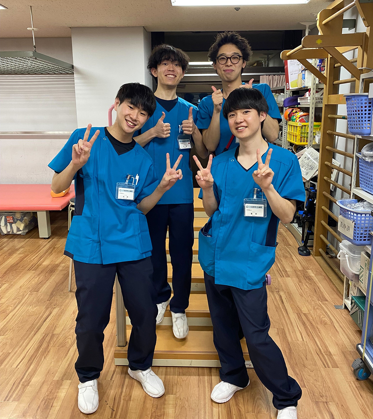 神戸市立医療センター中央市民病院の急性期理学療法コース2025年度の大学院生(左から小島さんM2、石井さんM1、林さんM1、石山さんM1)