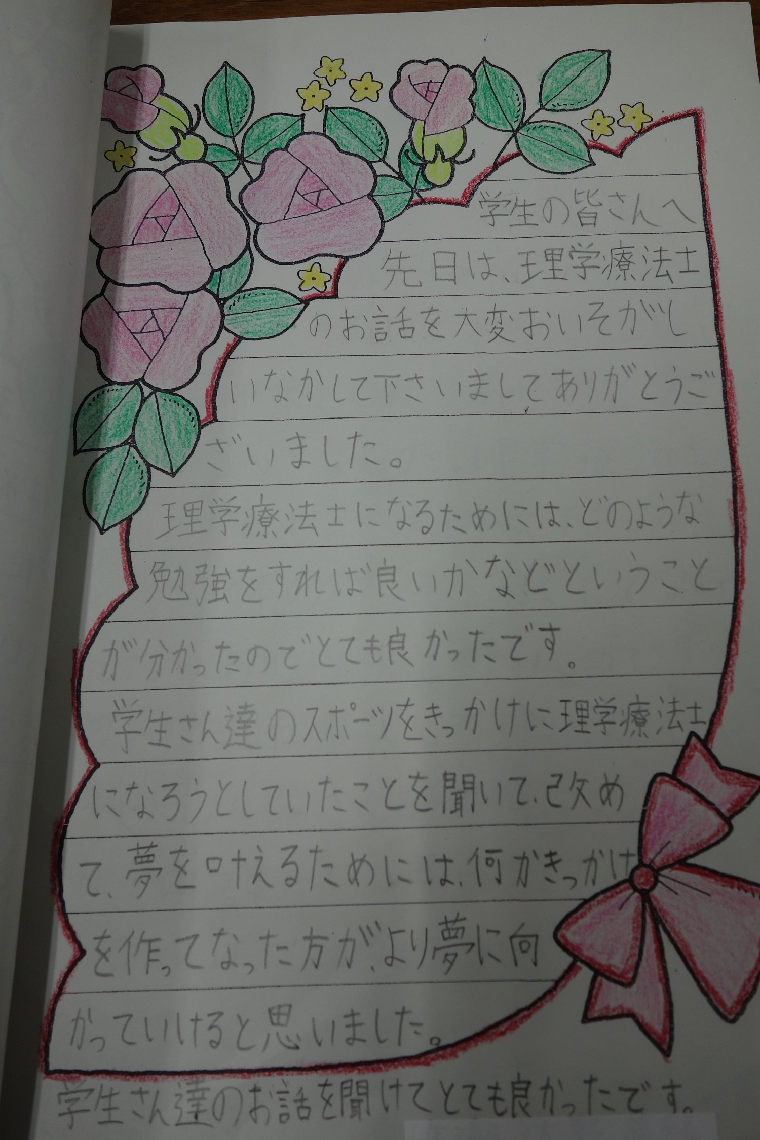 「夢を叶えたいと思えるきっかけに出会いたい」,「患者さんのために頑張るのは素敵だと思った」,「理学療法士という仕事を知ることができてよかった」など,たくさんの感想をもらいました.