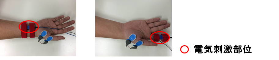 ポイント①:電極を図1のように固定します.電気刺激は,痛みが出ない程度の刺激強度で行われます.
